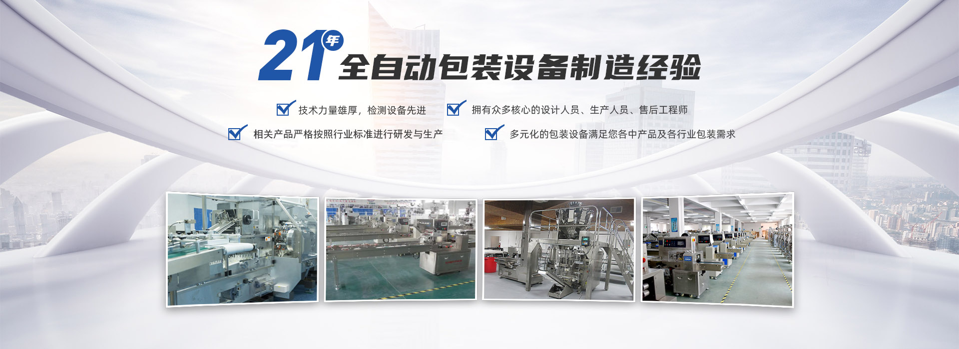 我公司一直致力于包裝機械的研發與創新,自行設計的藥用輸液瓶、軟袋自動包裝機、旁推鏈全自動枕式包裝機、紙巾包裝機、濕巾包裝機與吸管全自動包裝生產線、異形穿孔自動包裝機、GZB型系列高速枕式自動包裝機、食品包裝機等產品,以可靠的質量和良好的企業誠信贏得了國內外用戶的信賴。